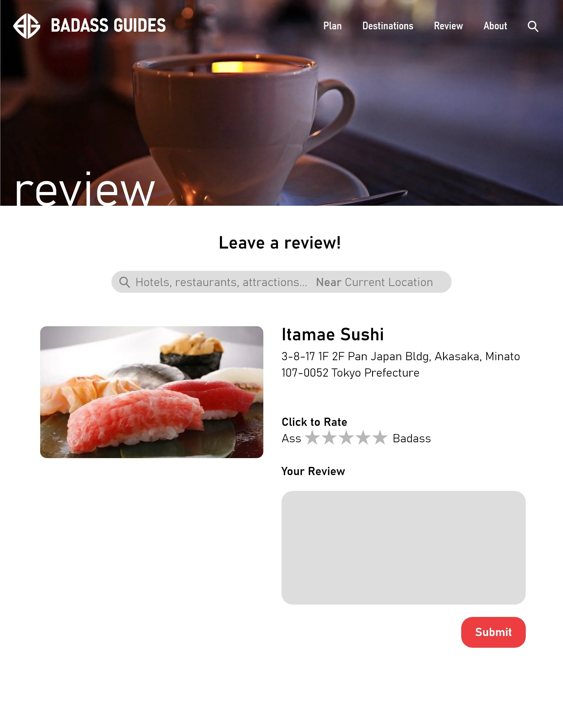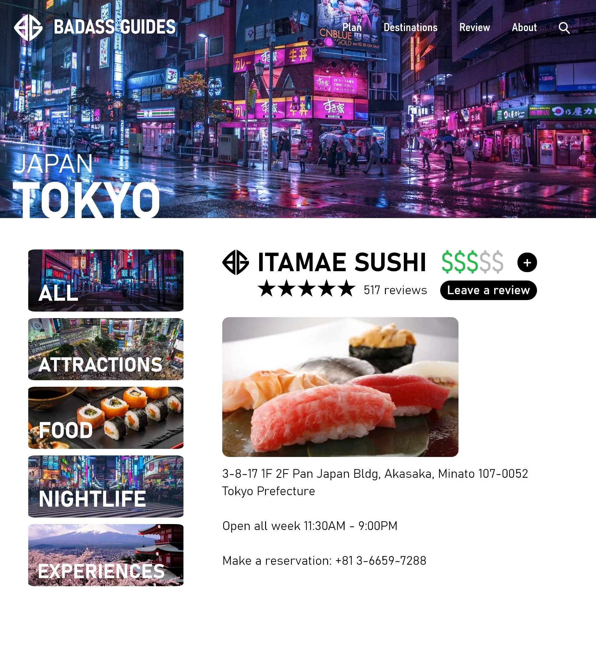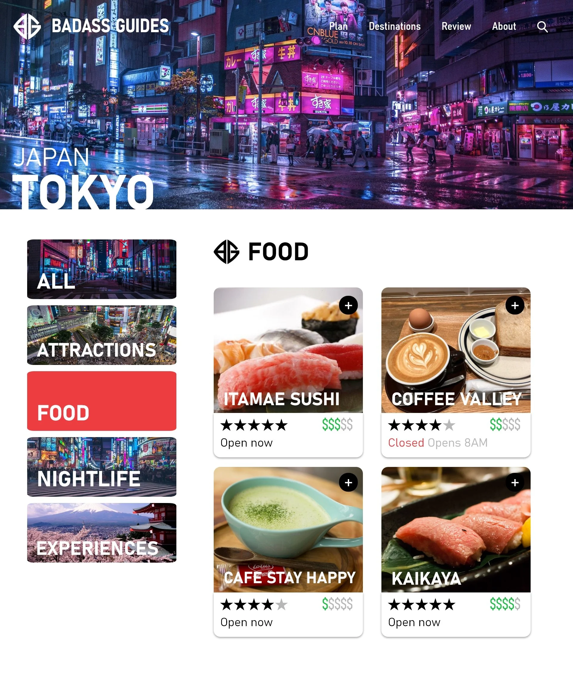 Branding and website designed for mock company "Badass Guides", a travel agency marketed to college students and young adults. The site is designed for the young adult demographic, with convenient features such as a review system, easy access pricing, and an all-in-one planning page.