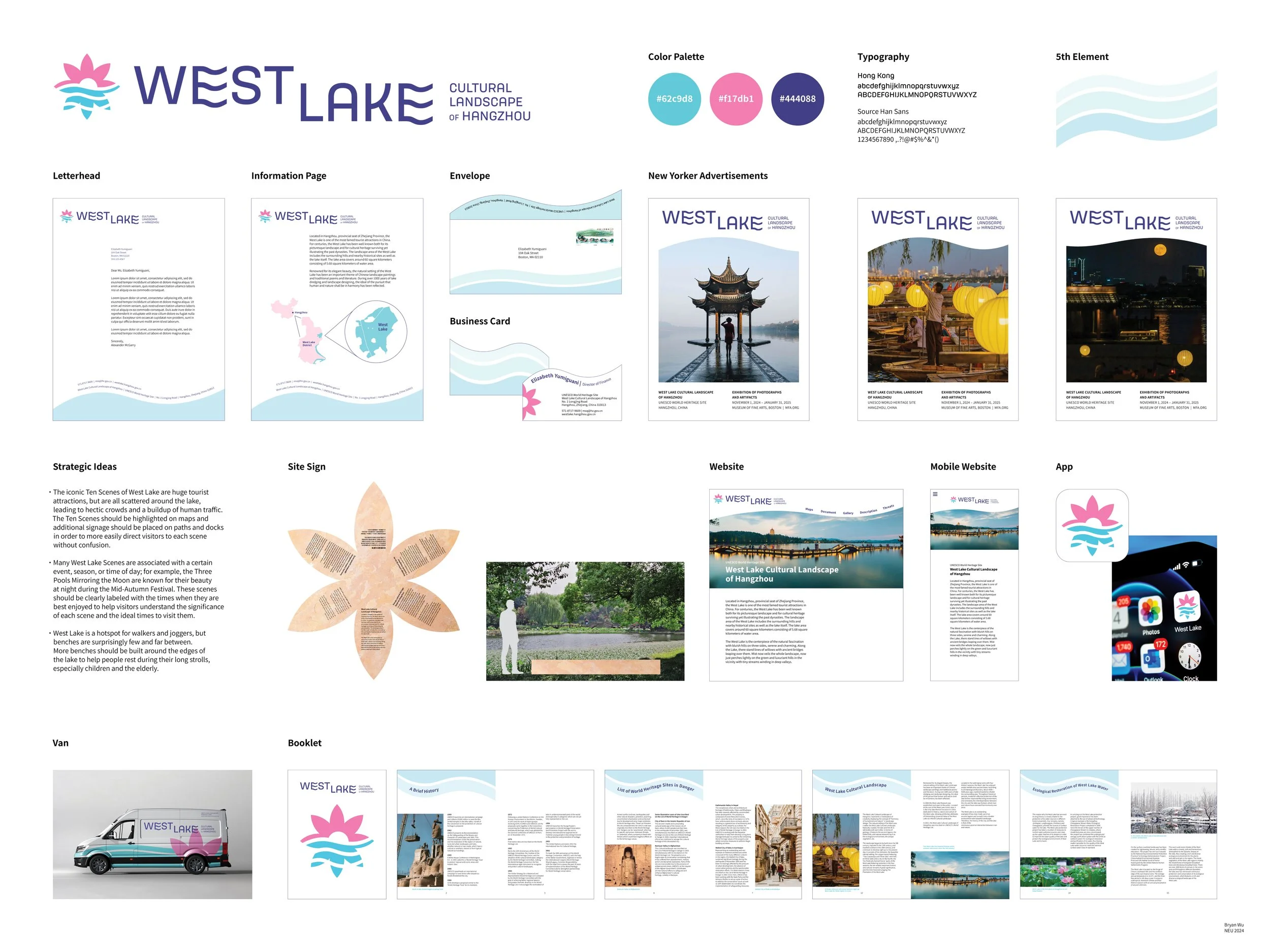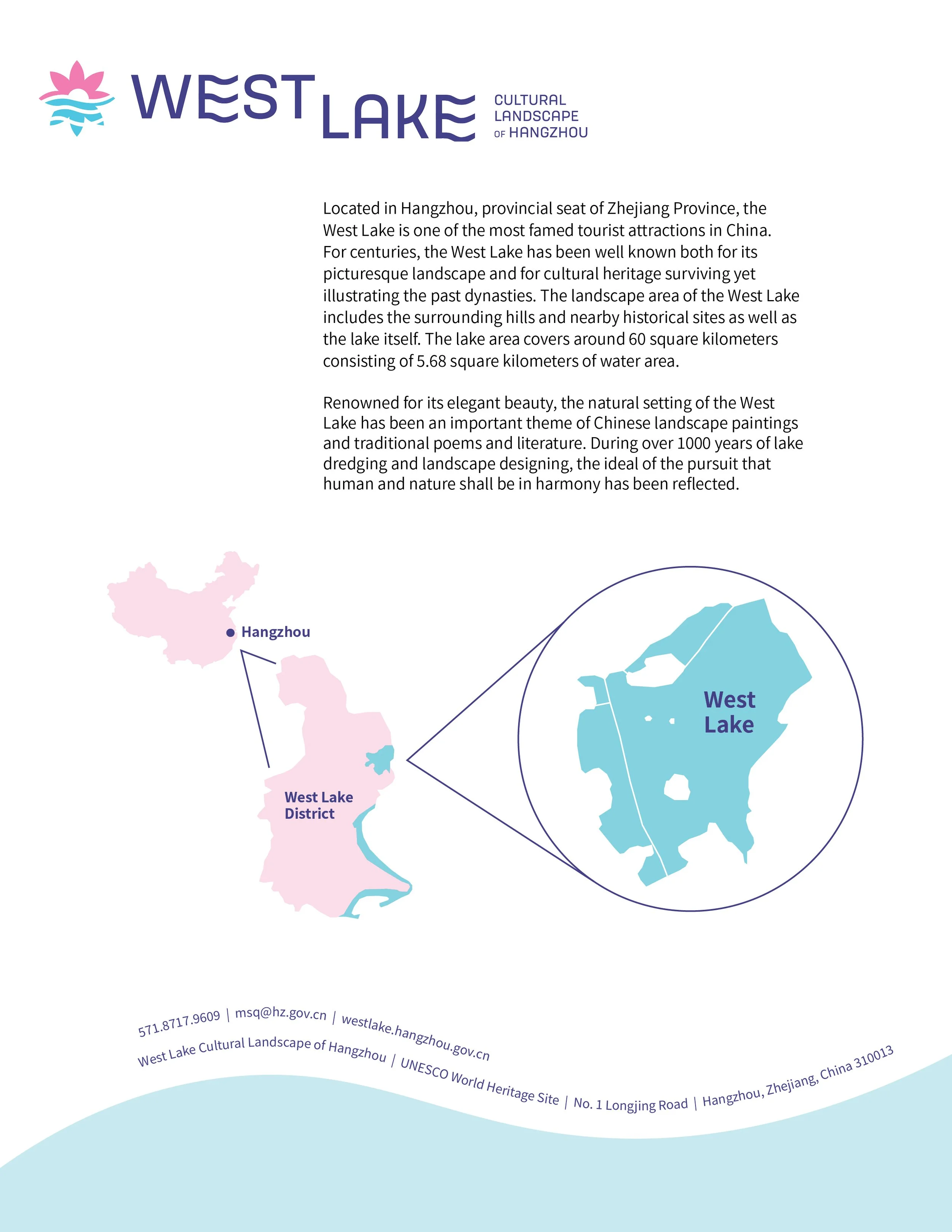 Comprehensive brand identity system for the West Lake Cultural Landscape of Hangzhou UNESCO World Heritage Site, including print, digital, and three-dimensional elements.